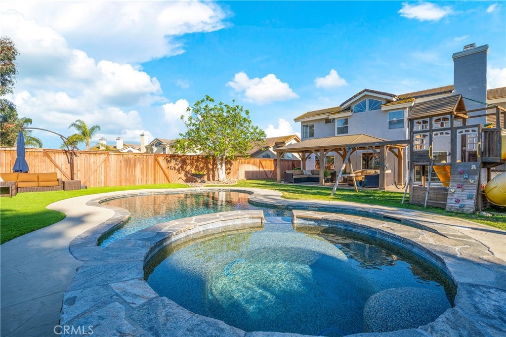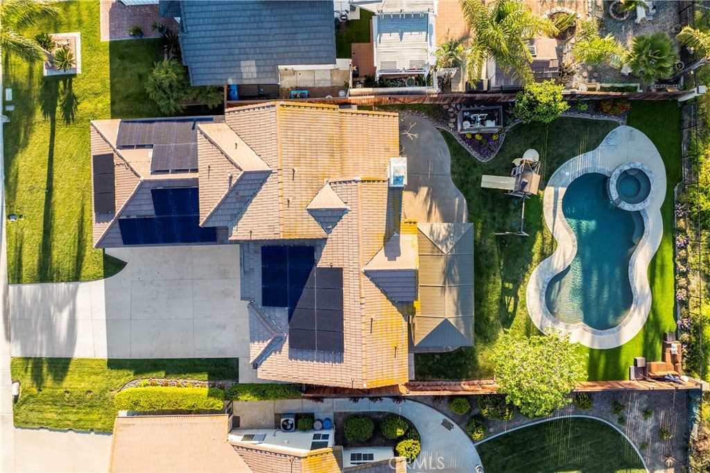 Just, WOW. Not another home on the market today in Temecula could compare! This Villa Avanti pool home is remarkable and stylish in every way. Situated on a large lot in a dual cul de sac in a quiet, picturesque neighborhood renowned for its generous lot sizes and curb appeal, this home exudes pride of ownership. With four bedrooms, including a main-level bedroom and bathroom with a walk-in shower ideal for multi-generational living, this home effortlessly accommodates diverse lifestyles. Recent exterior enhancements include new stacked stone accents, new paint, new garage doors, and a new craftsman style dual door formal entry. Inside, revel in comfort with the updated kitchen showcasing elegant shaker cabinets, quartz countertops, brand new appliances, recessed lighting, and a coffee bar. The remodeled kitchen is open to the family room with a modern stacked stone fireplace. Step into tranquility as you enter the backyard oasis featuring a stunning pebble-tek pool and cascading spa with mountain views enhanced by the privacy of no rear neighbors to see. Save money year round with solar panels providing energy efficiency, you can enjoy both luxury and sustainability. The expansive 3-car garage offers versatility with a conversion in the third bay, perfect for a gym, home office, flex room, or maybe even a junior ADU. Upstairs you will find brand new carpet, 2 bedrooms sharing a Jack and Jill dual sink bathroom and a spacious primary master suite with beautiful architecture and sweeping natural light, two closets, one a custom walk-in. The primary en-suite features a 5 piece bath with dual sinks, a vanity, walk-in shower, and a soaking tub. Experience the epitome of convenience with the ability to view the spectacular Fourth of July fireworks display right from your own driveway. New slim fit AC unit, new furnace, new tankless water heater! Located near Temecula's renowned wine country, the Promenade Mall, grocery stores, the 15 FWY, and top-rated schools within the Temecula Valley School District, including being within walking/riding distance to TVHS and Ronald Reagan Sports Park, this home offers the perfect combination of tranquility and accessibility. Too many good things to list, you just have to see it in person! Immerse yourself in the charm of this coveted community today!
