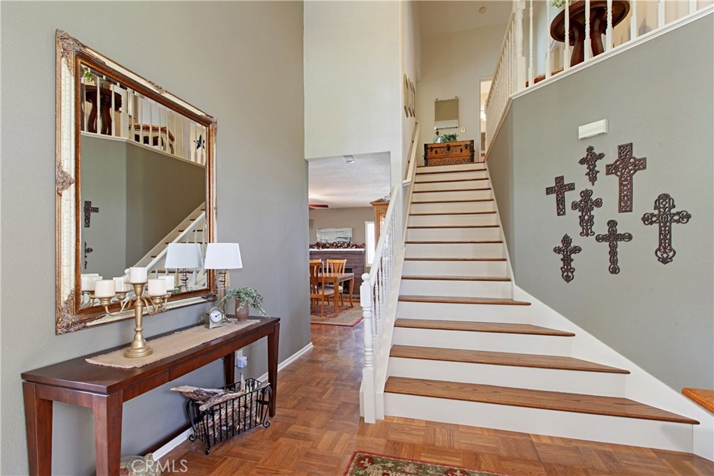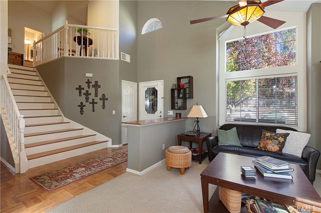 Fabulous and inviting pride of ownership home and property in an established and quiet community close to Temecula Valley High School. Lovingly cared for and meticulously maintained 3 bed/2.5 bath, 1,964 sq ft home w downstairs office-den that can be used as a 4th bedroom. Outstanding features includes classic parquet wood flooring, ceiling fans, 'like-new' carpet and engineered wood flooring upstairs. The main living room features soaring vaulted ceilings and a highly efficient natural gas heat-generating fireplace. Formal dining area currently used as den, which combined w the living room offers a modern great room. Dual french doors lead from the den to one of the zero-maintenance vinyl covered patios. The renovated kitchen offers granite countertops and stainless steel appliances and opens to the family room w fireplace, which is currently used as an inviting dining area. The office downstairs has its own private patio and is served by a half bath. Sliding doors from the family room lead to the 2nd huge patio area and the landscaped, park-like, back yard with no rear neighbors and expansive views to the southwest. The large master bedroom features vaulted ceilings and a gracious balcony to enjoy the amazing rear yard and dynamic views. The spacious master bath features dual sinks and oversized shower w skylight. Located in the desirable Villa Avanti community w award-winning schools and close to the regional park, Old Town and wine country. This is truly a MUST-SEE home.
