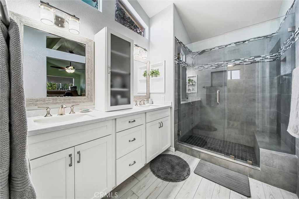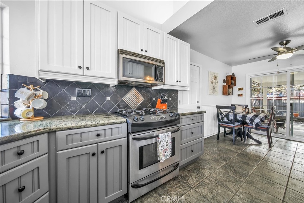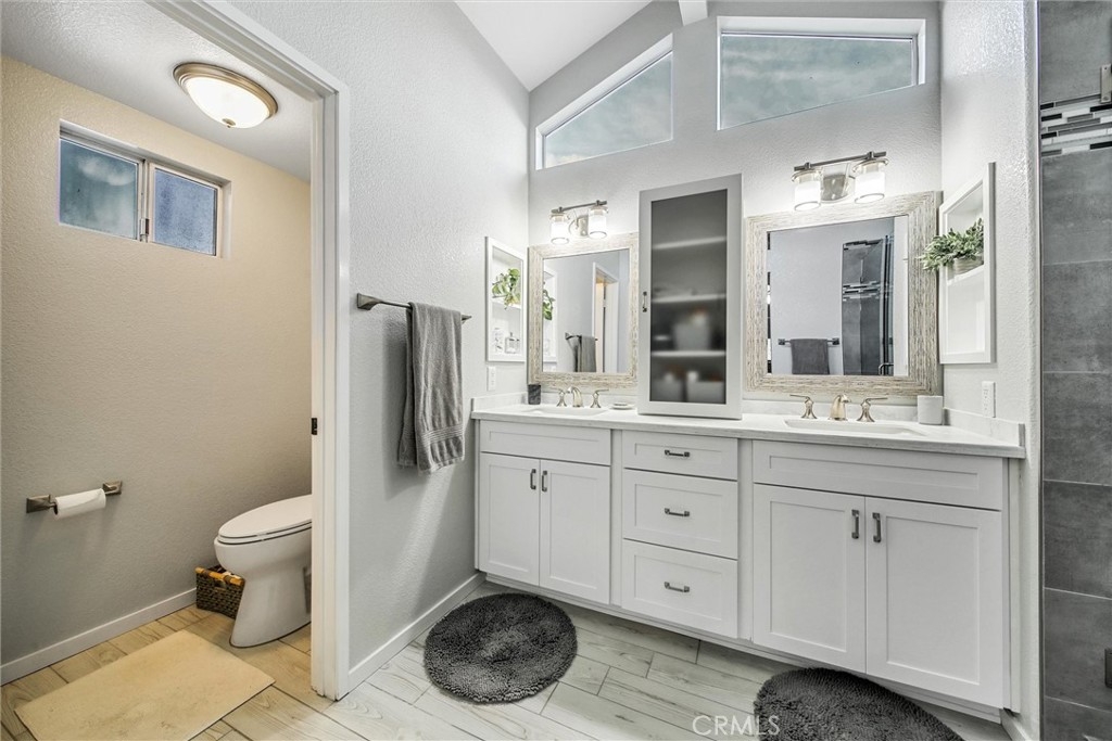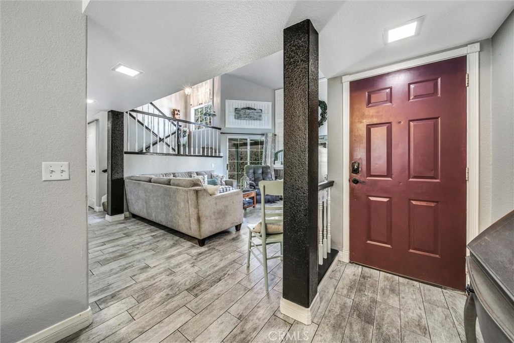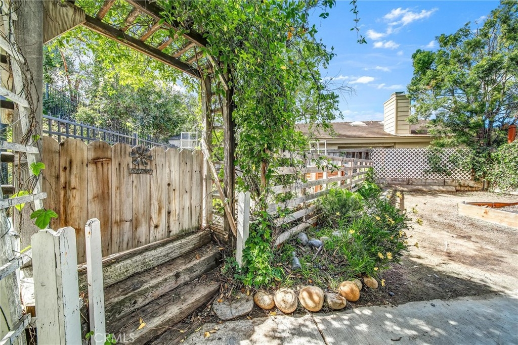 This home is truly one of a kind. It has one of the largest lots in the area and is placed on the street differently than others. The inside has so many gorgeous additions. The kitchen has 12x12 Porcelain tiles , custom built cabinets, granite countertops with Tumble stone backsplash. The living room and hallway have 6x24 Porcelain Plank Flooring, ship-lap walls above the fireplace and at end of hall as well as, ranch style window coverings at stairs. 3 bedrooms down with one bath. One bedroom used as office/art room has beautiful french doors that lead to side patio. The downstairs bath has new acrylic tub, porcelain tile in the shower, custom glass door, plank porcelain floor and ship lap walls. Upstairs is the primary bedroom and bath. Custom cabinets, updated walk in shower, custom doors, porcelain floors and newer sinks, faucets, shower valve and toilet. The large lot has 3 sections: side yard off living room has patio cover, concrete slab and a good size grass area. The back section is perfect for all your gardening! Raised beds for growing vegerables/flowers and is gated off to keep pets out if needed. The patio off the kitchen nook has an expansive patio cover and room for out door dining. Gated area for trash cans, storage sheds and so much more! Low taxes and low HOA.