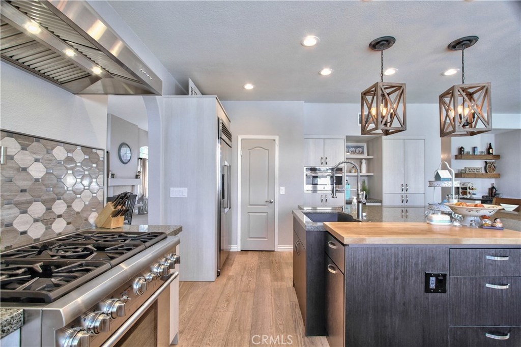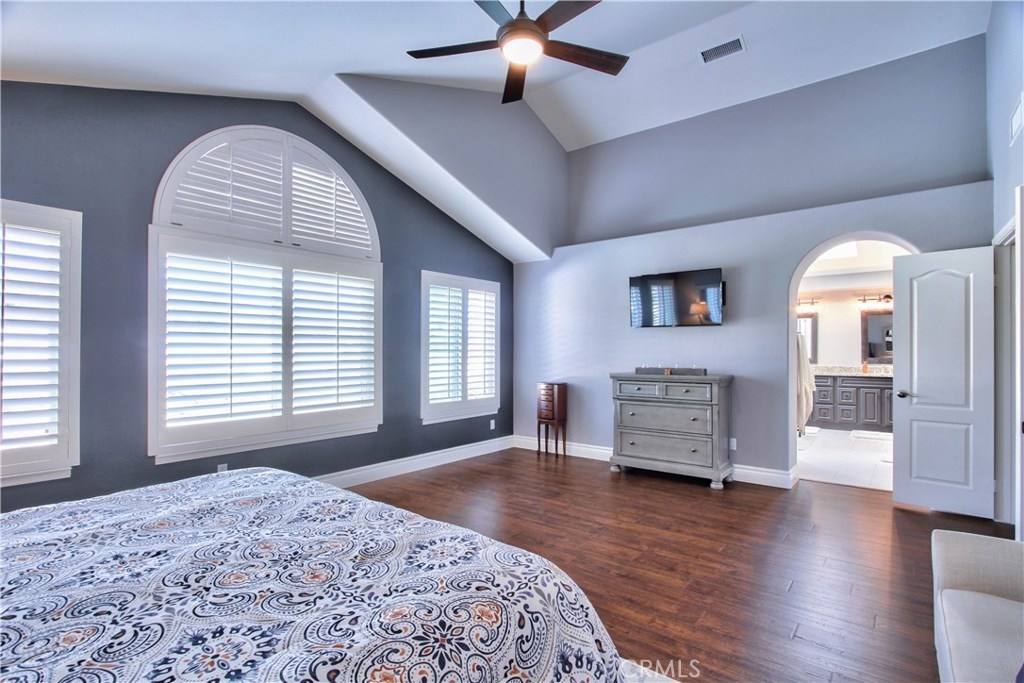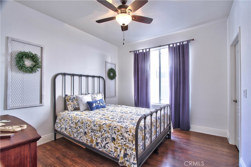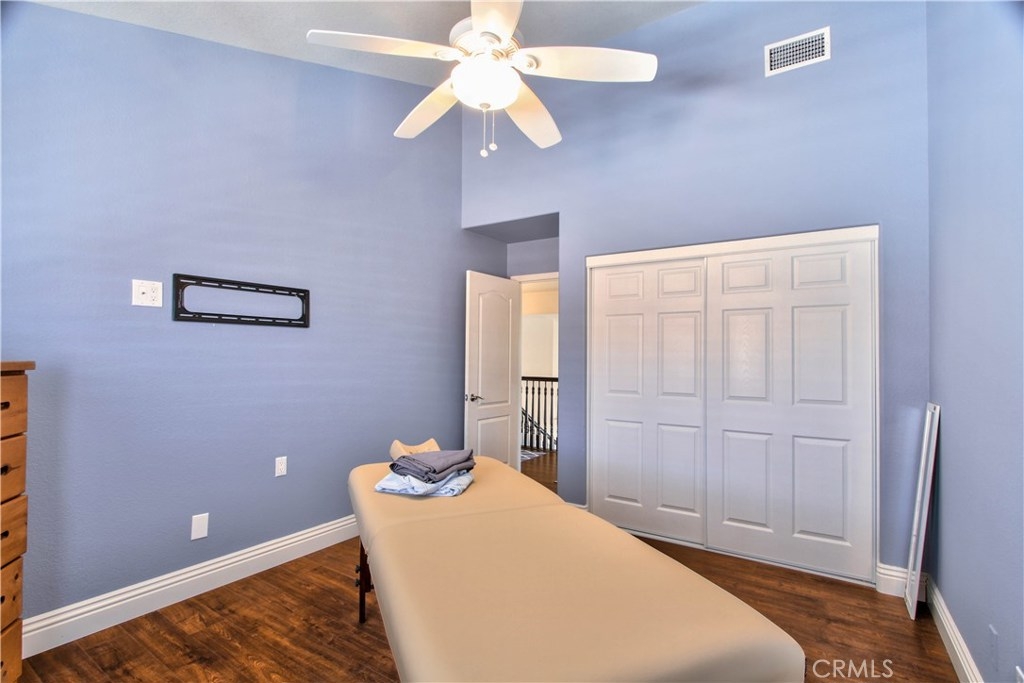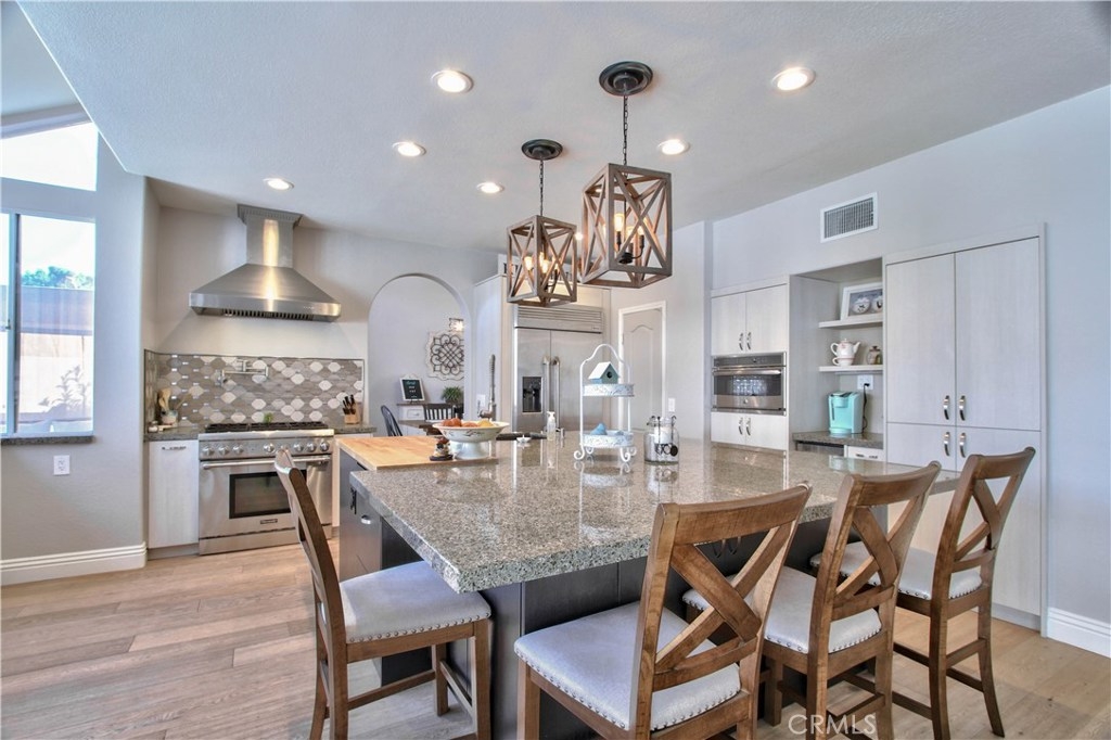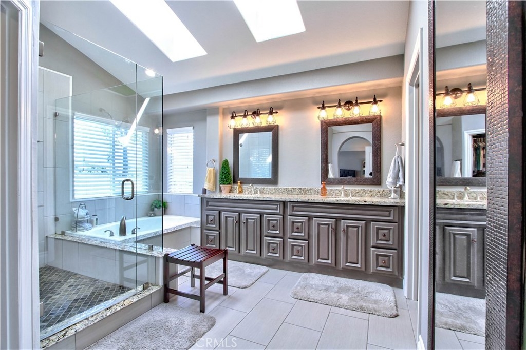 Welcome home to the highly sought-after community of Rancho Vista Estates in the heart of Temecula. Conveniently located near schools, shopping, restaurants, parks, wineries and more, this beautiful 5 bedroom, 3 bathroom home sits on a quiet double cul-de-sac and comes complete with a fully remodeled salt water pool and spa. Gorgeous inside and out, this home offers an attractive, on-trend paint palette throughout along with many upgrades. Your gated front porch leads you to the beautifully designed double-door entry where, upon entering, you are welcomed by an abundance of natural sunlight pouring in from the many windows and reflected in the two story ceilings. The kitchen is appointed with high end stainless steel appliances, a built in refrigerator and a huge center island featuring bar/counter seating – the envy of any chef! In addition to the spacious living areas, there is also a bedroom with a walk-in closet, an inside laundry room, and a full bath, all located downstairs. The 4 upstairs bedrooms include the master bedroom as well as an enormous guest room at the end of the hallway. All bedrooms have wood flooring (there is no carpet upstairs at all). The huge master bedroom and bathroom feature 2 closets, a large frame-less shower enclosure, a separate toilet room, and a dual basin vanity and large soaking tub with granite counters and surrounds. And this amazing rear yard was just made for entertaining. Too much to list! Come soon, this home will not last!