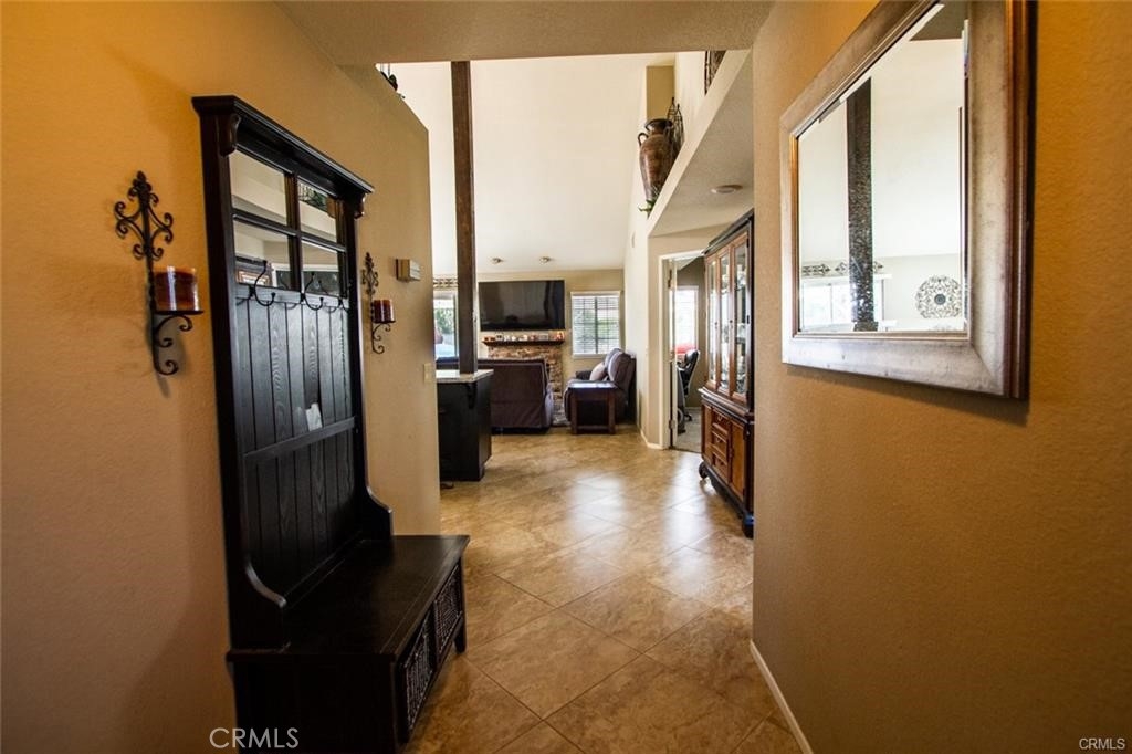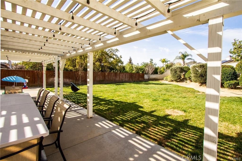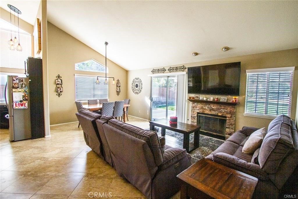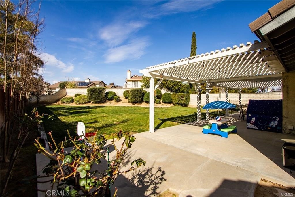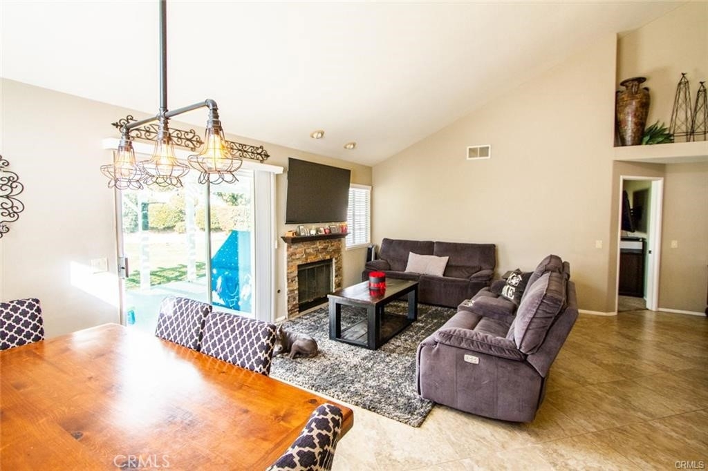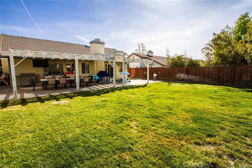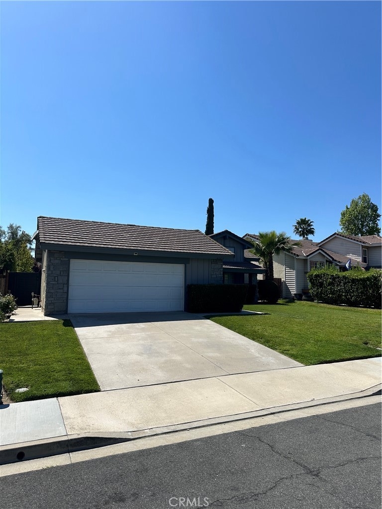 Welcome to this beautiful single-story home in the desirable neighborhood of Village Grove, in a quiet community located in the heart of Temecula. This lovely spacious 3 bedroom and 2 bath home offers a living room with fireplace, dining room with a glass sliding door leading to a private large pool sized yard. This wonderful home has 2 skylights for bright natural light-filled rooms have been tinted but tint could be removed, kitchen with Quartz counters and a large stainless steel sink, high ceilings throughout, tile flooring, central A/C & heating. The large primary bedroom has a walk-in closet, ensuite full bathroom with his & her vanity area, glass sliding door leading to the rear patio area with lush green grass, great for family gatherings & BBQ's. The second spacious bedroom has a tall ceiling and mirrored wardrobe doors. The nice size secondary bathroom is a 3/4 bathroom located near the second bedroom, and the 3rd room makes a great office den, or guest room. Front and back yards have automatic sprinklers. New iron custom gates with touch locking keypads on both sides, new sliding doors and much more. The two-car attached garage is every man's dream set up as the perfect man cave, game room or shop area. the garage also has an automatic garage door. Two car driveway and plenty of parking on the street for your family & guests. Low monthly HOA dues, includes 2 neighborhood parks short walking distance from home, 1 park with half-court basketball & grass area and second park area includes picnic & children's play area. This home is conveniently located across from Temecula Valley High School, the community center, and Ronald Regan Sports Park. Close to local shopping, mall, restaurants, golf and Temecula Wine Country. This lovely home is a must see!!!