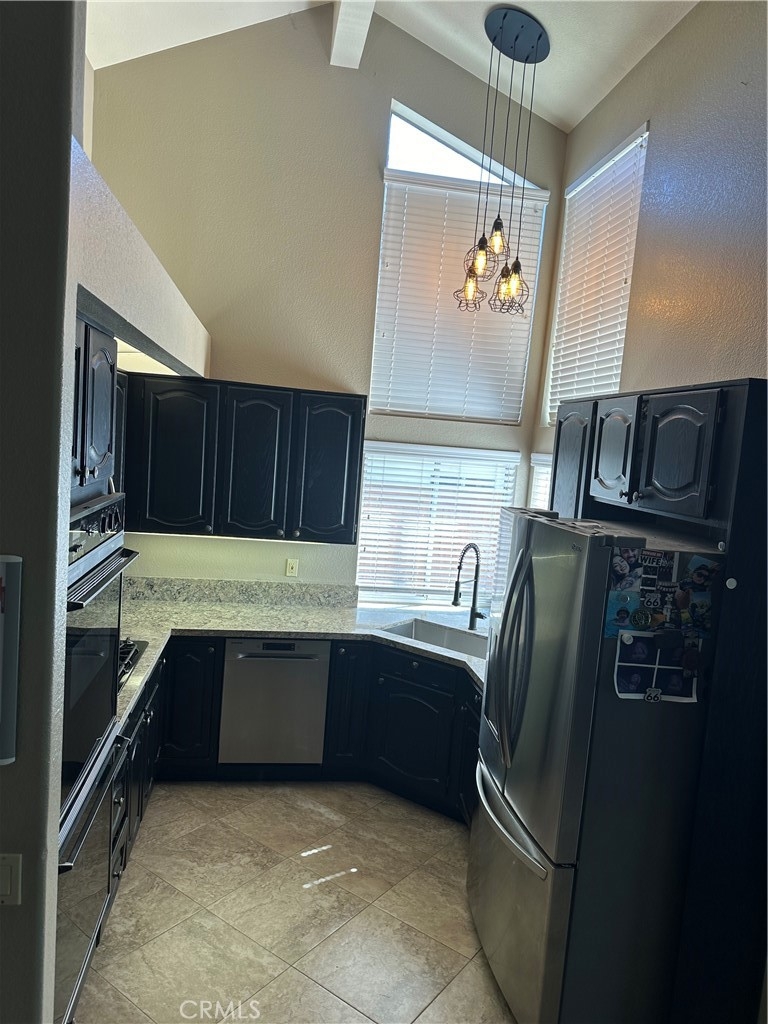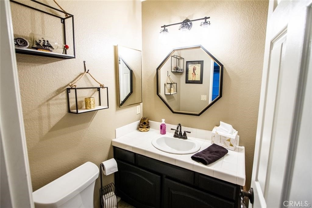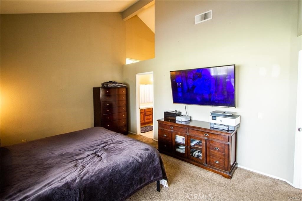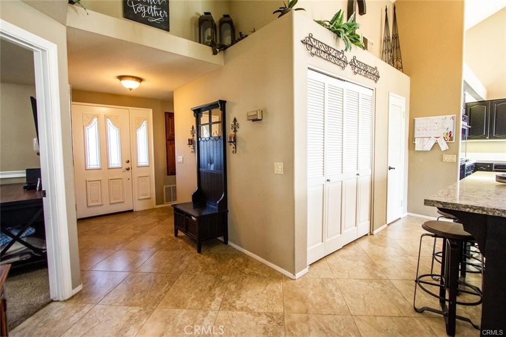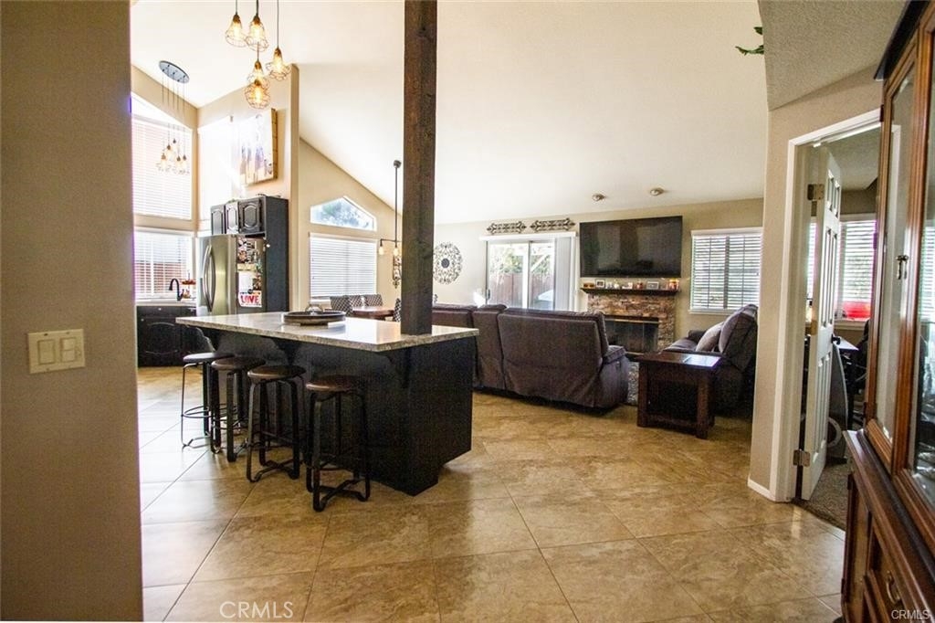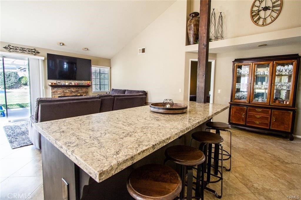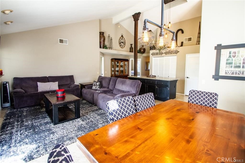 Welcome to this beautiful single-story home in the desirable neighborhood of Village Grove, in a quiet community located in the heart of Temecula. This lovely spacious 3 bedroom and 2 bath home offers a living room with fireplace, dining room with a glass sliding door leading to a private large pool sized yard. This wonderful home has 2 skylights for bright natural light-filled rooms have been tinted but tint could be removed, kitchen with Quartz counters and a large stainless steel sink, high ceilings throughout, tile flooring, central A/C & heating. The large primary bedroom has a walk-in closet, ensuite full bathroom with his & her vanity area, glass sliding door leading to the rear patio area with lush green grass, great for family gatherings & BBQ's. The second spacious bedroom has a tall ceiling and mirrored wardrobe doors. The nice size secondary bathroom is a 3/4 bathroom located near the second bedroom, and the 3rd room makes a great office den, or guest room. Front and back yards have automatic sprinklers. New iron custom gates with touch locking keypads on both sides, new sliding doors and much more. The two-car attached garage is every man's dream set up as the perfect man cave, game room or shop area. the garage also has an automatic garage door. Two car driveway and plenty of parking on the street for your family & guests. Low monthly HOA dues, includes 2 neighborhood parks short walking distance from home, 1 park with half-court basketball & grass area and second park area includes picnic & children's play area. This home is conveniently located across from Temecula Valley High School, the community center, and Ronald Regan Sports Park. Close to local shopping, mall, restaurants, golf and Temecula Wine Country. This lovely home is a must see!!!